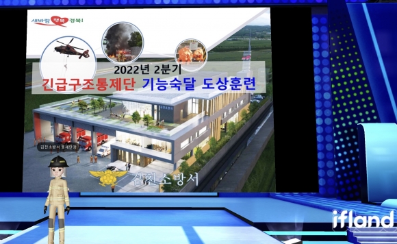 누적 가입자가 300만 명을 돌파한 국내 대표 메타버스 소셜 플랫폼인‘이프랜드(ifland)’를 활용해 가상공간에서 김천실내체육관 보조경기장을 대상으로 도상훈련을 실시했다.