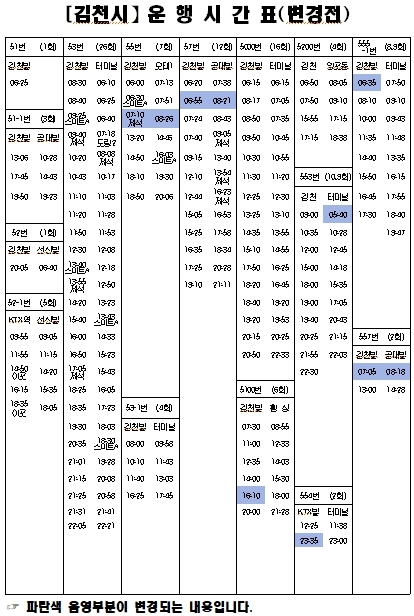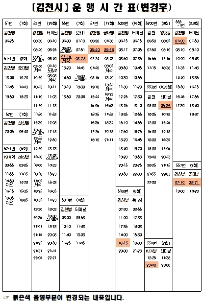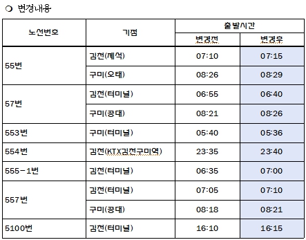 구미지역공동관리위원회(일선교통, 구미버스)시내버스 일부 시간표 변경 안내