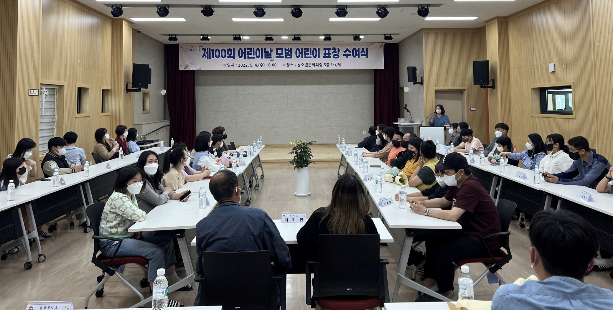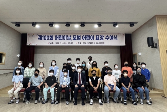 | 김천시에서는 지난 5월 4일 제100회 어린이날을 맞이하여 청소년문화의집 3층 대강당에서 모범어린이 27명과 부모님 25여명이 참석하여 표창장 수여식을 개최했다. 올해 어린이날은 일제통치하에 있던 1922년 어린이들에게 민족정신을 고취시키기 위하여 소파 방정환 선생님께서 세계 최초로 어린이날을 제정하여, 제100회를 맞이하는 뜻깊은 날이다. 이날 표창장 수여식은 청소년문화의집 홍보영상을 시작으로 표창장 수여, 격려말씀, 사진촬영, 시설라운딩 순으로 진행되었으며, 코로나 19로 인하여 작년에 이어 김천어린이날 큰잔치 행사를 치루지 못하고 모범어린이 표창 수여식으로 대신하여, 어린이날을 맞이하는 아동들에게 따뜻한 위로와 축하를 하는 의미 있는 시간을 가졌다.