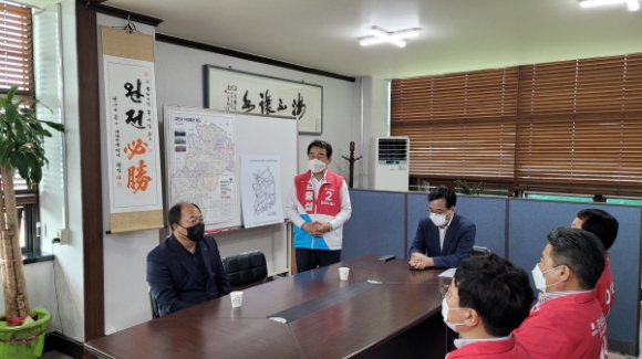 |  | | | ⓒ 김천내일신문 | | 국민의힘 김천시 당원협의회(위원장 송언석 국회의원, 이하 김천 당협)는 지난5월7일, 6.1 지방선거에 출마하는 당 소속 후보자들의 당협 방문에 맞춰 국민의힘의 공정한 공천과정을 시민들께 공개하였다