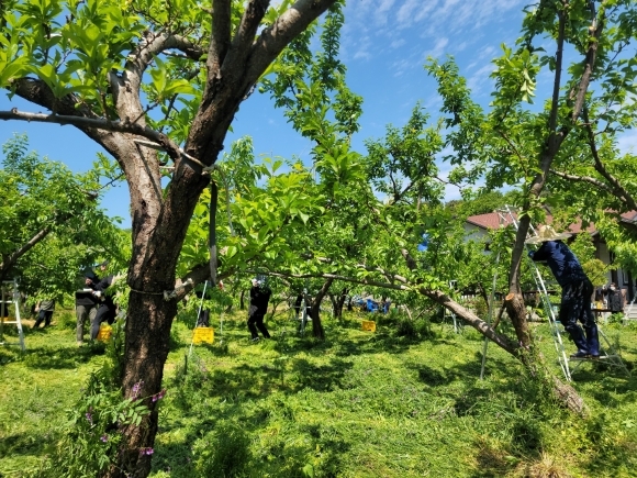자두, 복숭아 적과 작업 일손돕기에 팔 걷어붙여