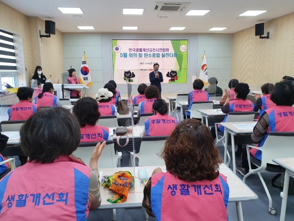 | 한국생활개선회 김천시연합회(회장 김지현)에서는 지난 5월 6일 농경유물관 실습교육장에서 회원 45명이 모여 탄소중립 실천과 농촌 환경보호에 대한 결의를 다짐했다.