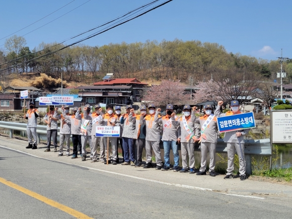 감문면 일대에서 진행된 산불예방 캠페인에는 소방공무원, 의용소방대원 등 30여명이 참여했다.