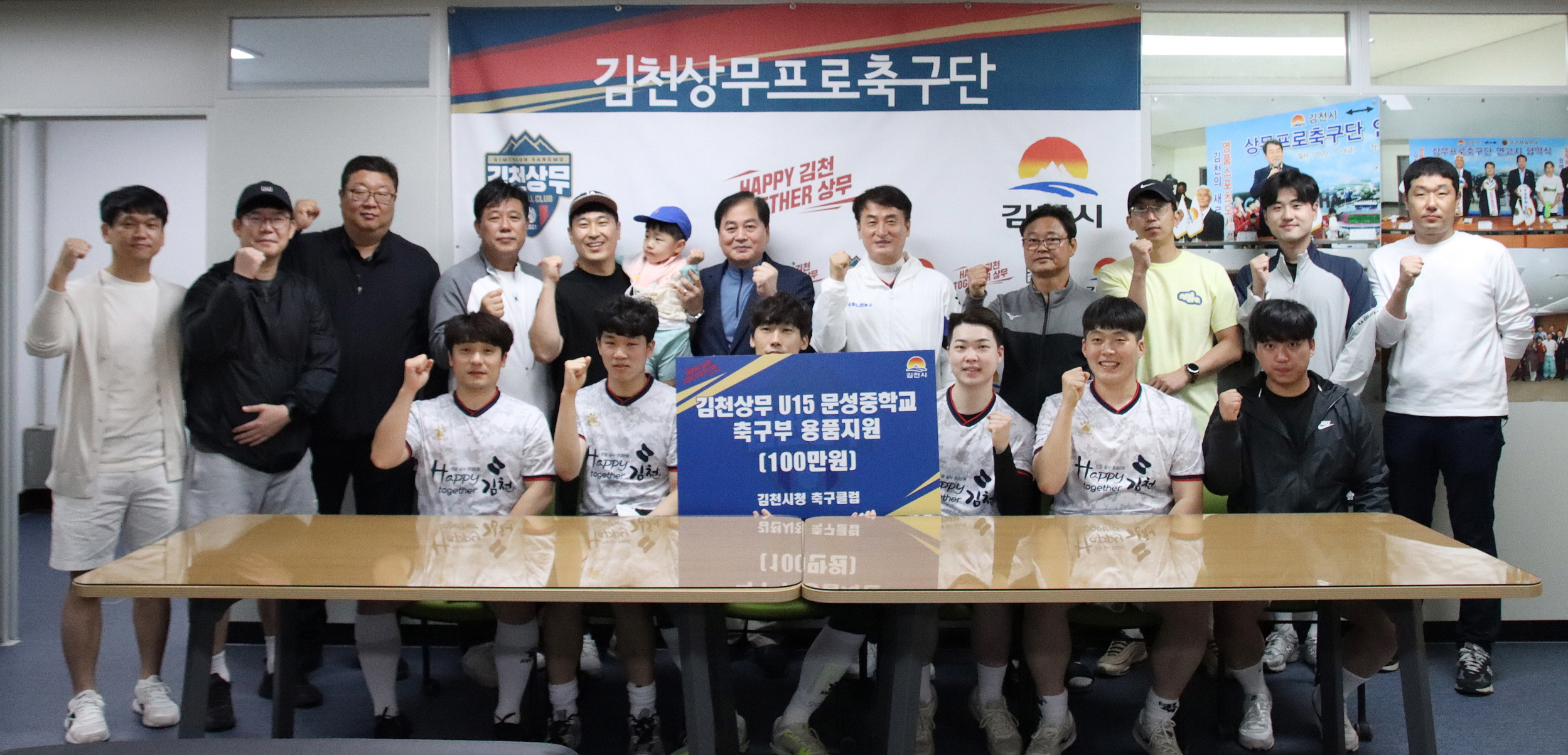 한편, 하프시즌권 구매 행사 이후에는 김천시청 축구클럽에서 김천상무 U15 문성중학교 축구부 용품지원을 위해 100만원을 전달하며 마음을 전했다. |