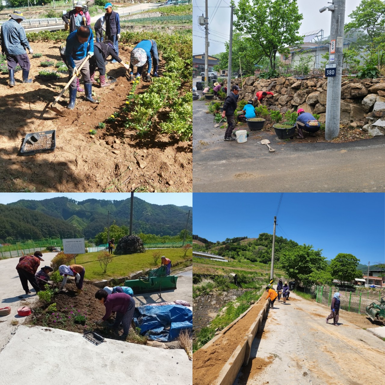 부항면 주민자치위원회와 각 마을별 주민들이 공동 협력하여 꽃밭 조성