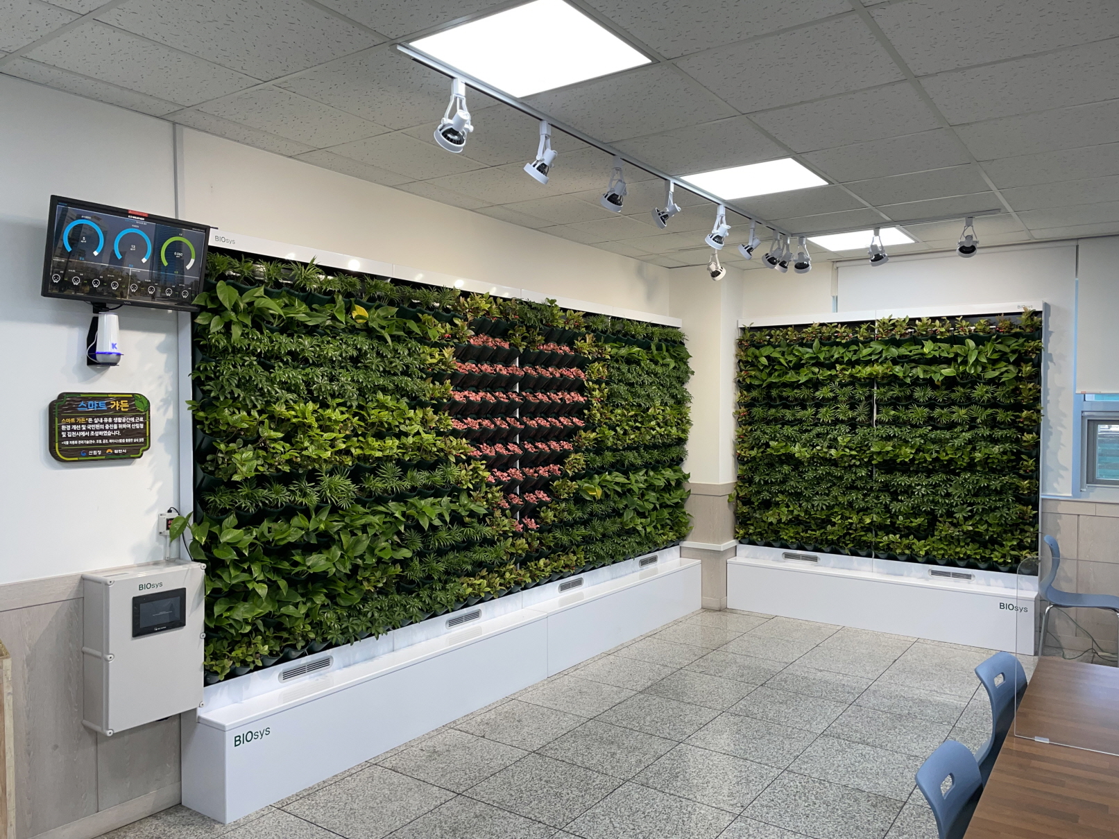 | 김천시는 산업단지 2개소(동희산업㈜, ㈜이솔화학)와 공공기관 1개소(김천시 시설관리공단 실내수영장)에 실내 유휴공간을 활용한 스마트가든볼(실내정원)을 조성하였다. 스마트가든볼은 실내 미세먼지 저감과 쾌적한 생활환경을 조성해 이용자의 치유, 휴식, 관상 효과를 극대화 함으로써 심신 안정에 도움을 주는 실내 수직정원이다. 실내 유휴공간에 산호수, 테이블야자, 스킨답서스, 휘토니아 등 실내에 적합한 식물을 심고 이를 자동화 관리기술(IOT)로 유지 관리하는 것이 특징이다.