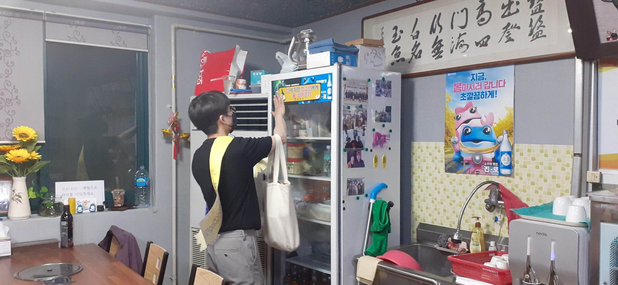 이날 활동에는 김천시청, 김천경찰서, 김천YMCA청소년유해환경감시단, 김천시 청소년상담복지센터 4개 기관 13명이 참여하여 대곡동 일대 음식점, 편의점 등 40여개 업소에 대해 계도 활동을 진행했다.