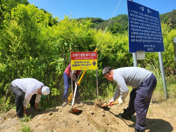 부항면 쓰레기 불법투기 금지 입간판 제작 설치
