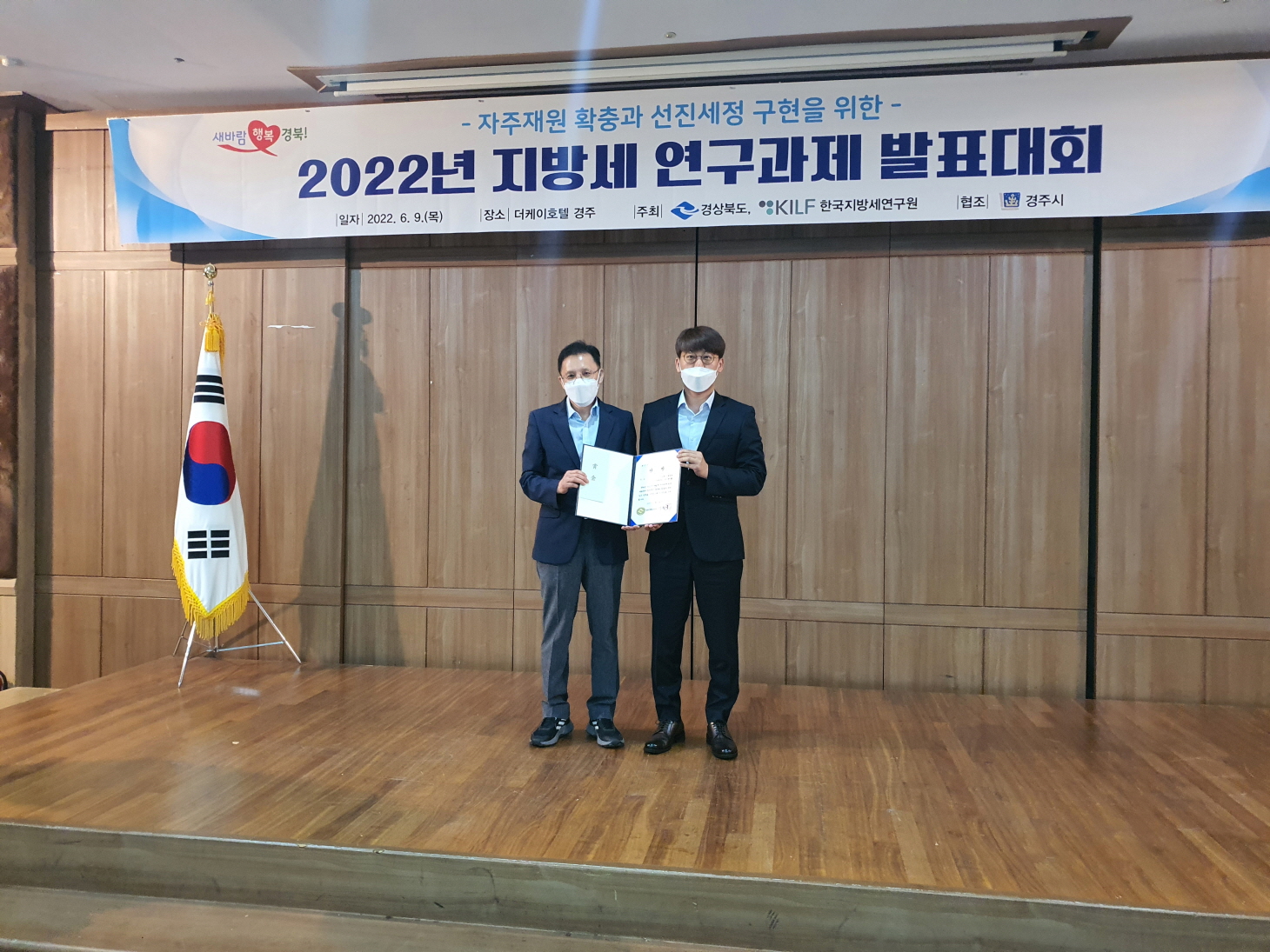 | 김천시가 6월 9일 경북도와 한국지방세연구원이 개최한 2022년 지방세 연구과제 발표대회에서 우수상을 수상했다.