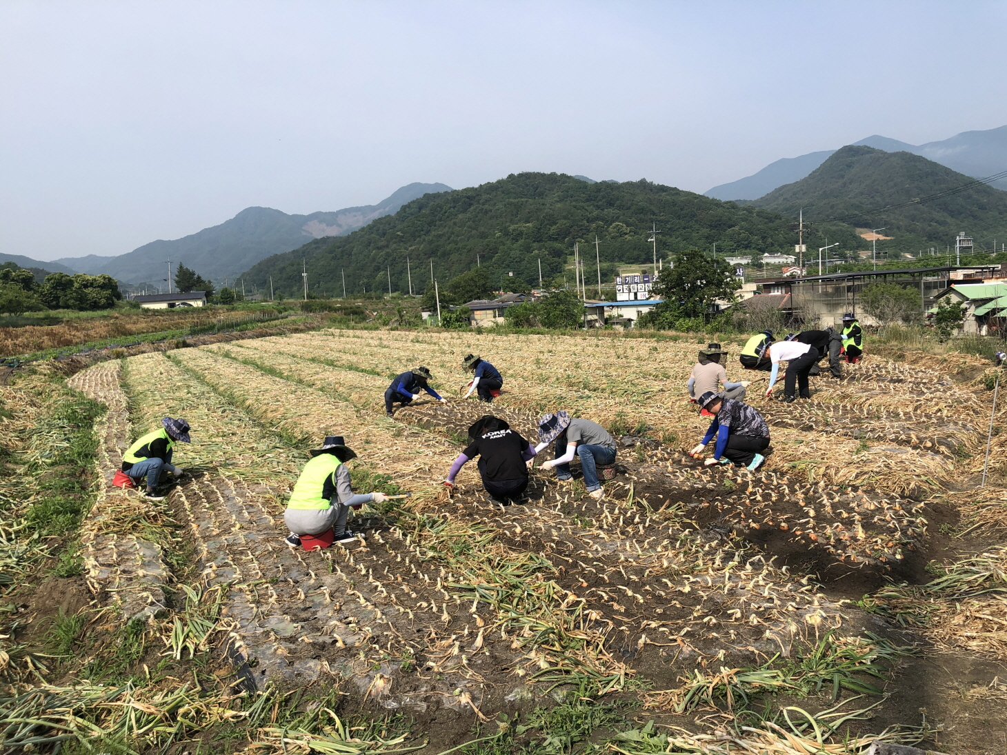 아침 일찍 농가를 방문하여 농장주로부터 간단히 양파 수확에 대한 교육을 받고, 정해진 구역별로 양파밭에서 수확 작업을 하며 구슬땀을 흘렸다. 사전에 개인 장갑과 모자 등 작업 도구를 지참하고 간식, 식사 등을 별도로 준비하여 농가의 부담을 덜어 주었다.
