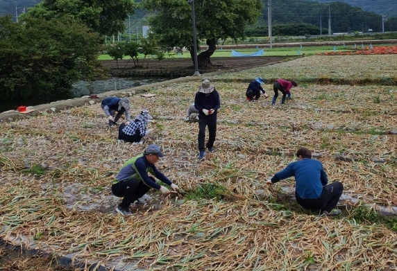 김천시 세정과, 양파재배농가 돕기에 구슬땀 흘려
