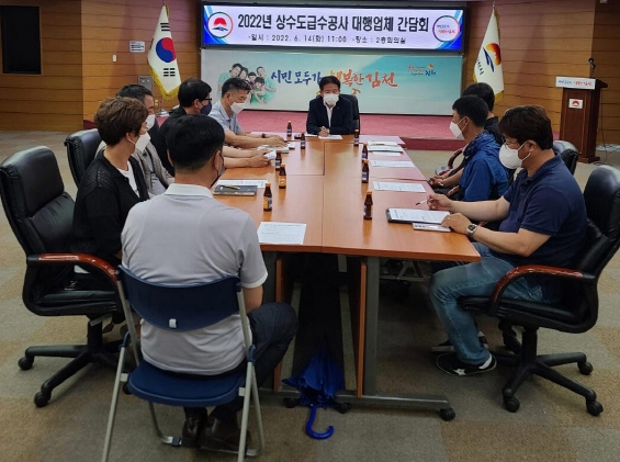 간담회에서 시는 ⌜해피투게더 김천운동⌟과 연계한 상수도대행업체 직원의 친절교육을 실시했으며, 여름철을 앞두고 집중호우 대비와 폭염에 따른 안전사고 예방 등 적극적인 협조를 당부했으며 원활한 급수공사 시행을 위해 관련업체 대표들의 건의사항 청취와 토론하는 시간을 가졌다.