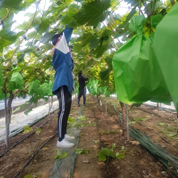 | 조마면행정복지센터 직원들은 6월 16일 농번기 일손부족으로 어려움을 겪고 있는 샤인머스켓 재배 농가를 방문하여 포도 순따기에 모두가 구슬땀을 흘렸다.