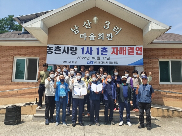 | 김천시 어모면(면장 조용화) 남산3리 마을과 친환경 바닥재 및 창호 등 건축자재를 생산하는 (주)KCC 김천공장이 17일 농촌사랑 1사1촌 자매결연을 맺었다.