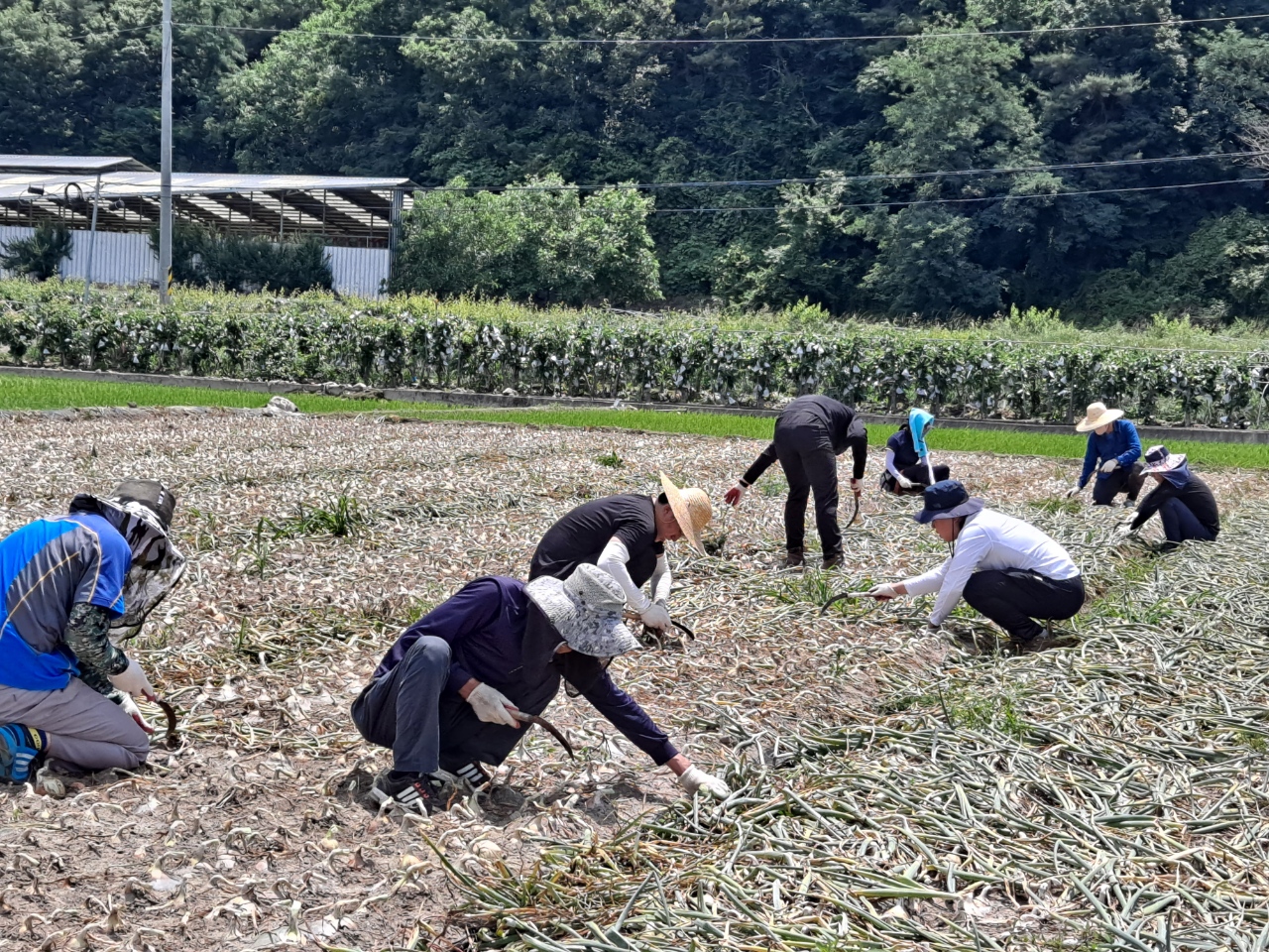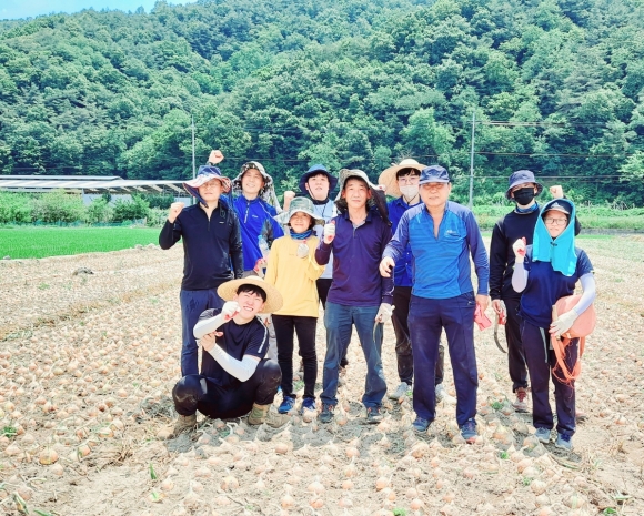 | 김천시 도로철도과(과장 최재명) 직원 10여명은 6월 17일 대덕면 가례리 일원의 양파 농가를 방문하여 ‘농촌일손 한번 더하기 운동’에 동참했다. 이번 농촌일손 돕기는 농촌인력의 고령화와 인건비 상승에 따른 농가의 어려움을 공감하자는 직원들의 마음을 담아 추진하게 되었으며, 도로철도과 직원들은 햇볕이 내리쬐는 무더운 날씨에도 불구하고, 양파 줄기 제거작업에 구슬땀을 흘렸다. 농가주는 “일손이 부족하고, 연일 비가 오는 날씨가 계속되어 양파 수확에 걱정이 많았는데 도로철도과 직원들이 바쁘신 업무에도 불구하고, 적기에 일손을 도와줘 한시름 덜었다.”라고 고마움을 전했다.