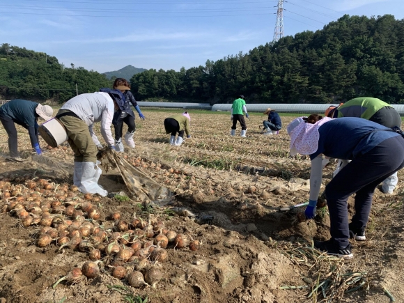 | 김천시립도서관(관장 배정화)은 지난 6월 17일 양천동의 양파재배 농가를 방문해 양파수확을 도왔다.