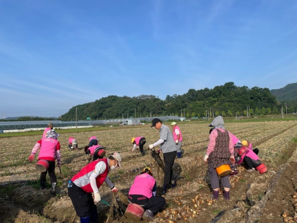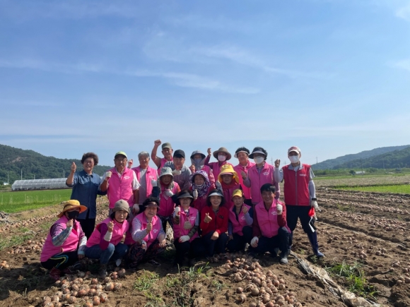 | 양금동 통장협의회(회장 정호동)는 6월 17일 관내 양파 재배농가를 방문하여 양파수확을 도왔다. 이날 농촌 일손 돕기를 위해 양금동 통장들은 큰 모자와 토시, 장화 등으로 무장하고 아직 어두운 새벽부터 양파밭에 모여 구슬땀을 흘렸다. 양파의 줄기를 낫으로 베고, 밭의 비닐을 벋기고, 양파를 뽑아내고 망에 담는 작업이 해가 뜨거워질 무렵까지 계속되었다.