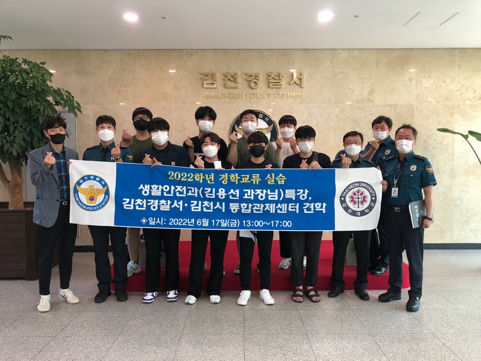 이날 프로그램에 참석한 김천대 지도교수(학과장 김봉수)는“강의실에서 이론 강의만 하다가 경찰관서를 방문, 생동감 있는 경찰활동 사항에 대한 설명을 듣고 주민 맞춤형 자치경찰제 시행에 대한 공감대를 형성하는 계기가 되었다”고 소감을 밝혔다.