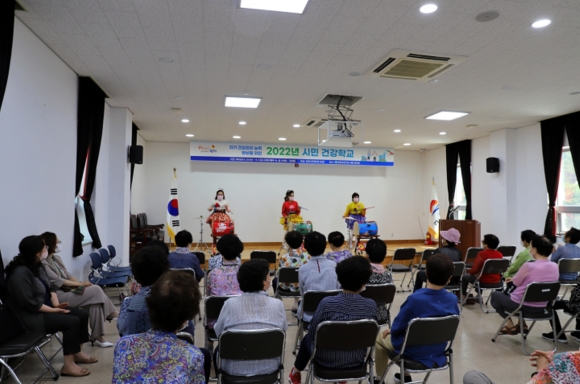 「시민 건강학교」는 시민 건강강좌 교실로서, 다양한 강좌를 통한 자가 건강관리 능력의 향상을 목표로 하는 회원제 건강증진 프로그램을 말한다. 참가자 40명으로 구성된 시민건강학교는 6. 22.(수) ~ 9. 7.(금) 까지 매주 수요일, 금요일 14:00 중앙보건지소 4층 강당에서 진행된다.