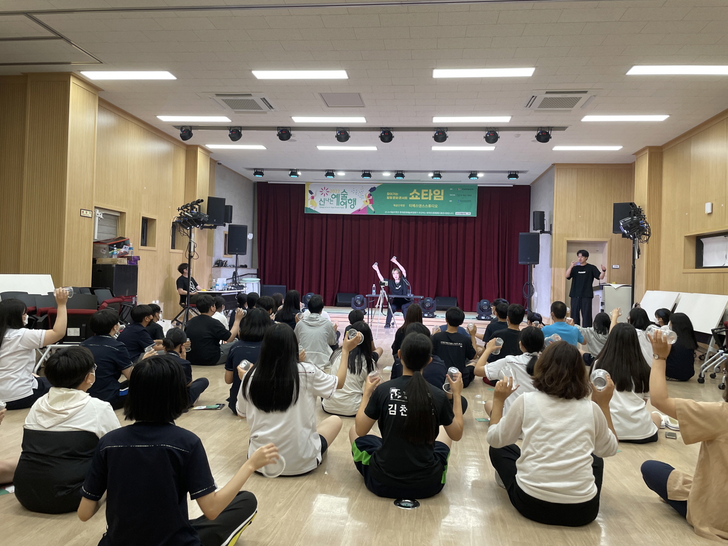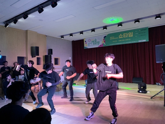 신나는 예술여행은 한국문화예술위원회 공모사업으로 선정되어, 청소년 문화향유 기회 증진과 문화양극화 해소를 위해 TS댄스스튜디오 지원으로 ‘찾아가는 힐링 문화 콘서트 쇼타임’이라는 주제로 공연이 진행되었다.