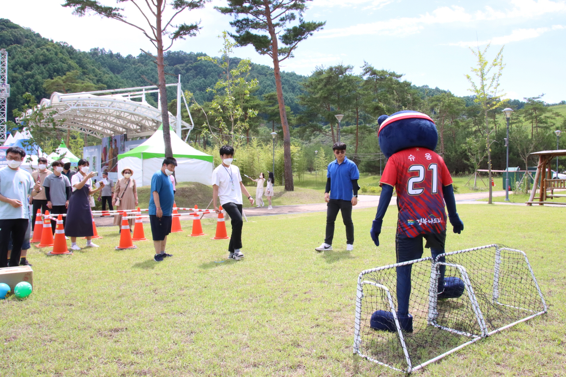 오후 2시부터 2시 30분까지는 마스코트 슈웅이를 이기고 골을 넣는 ‘슈웅이를 이겨라’ 이벤트를 진행한다. 슈웅이와 PK 대결에서 승리한 참여자에게는 김천상무 핸디 선풍기를 증정한다.