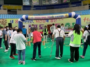 장애인에 대한 편견을 없애고 사회참여와 자신감을 향상시켜 지역장애인의 체육발전을 도모하고자 마련된 이날 행사에 참여한 김천대 사회복지전공 학생들은 수어통역과 체육대회 진행 보조, 아로마 비누만들기 부스를 운영하였다.