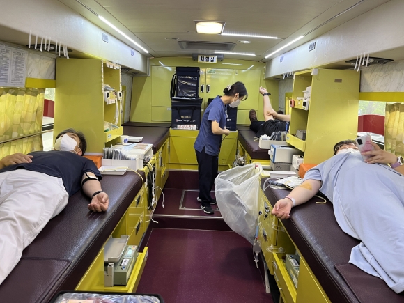 | 김천시(시장 김충섭)는 지난 6월 23일(목) 김천시청 전정에서 오전 10시부터 오후4시까지 대한적십자대구․경북혈액원과 연계하여 헌혈을 실시했다.