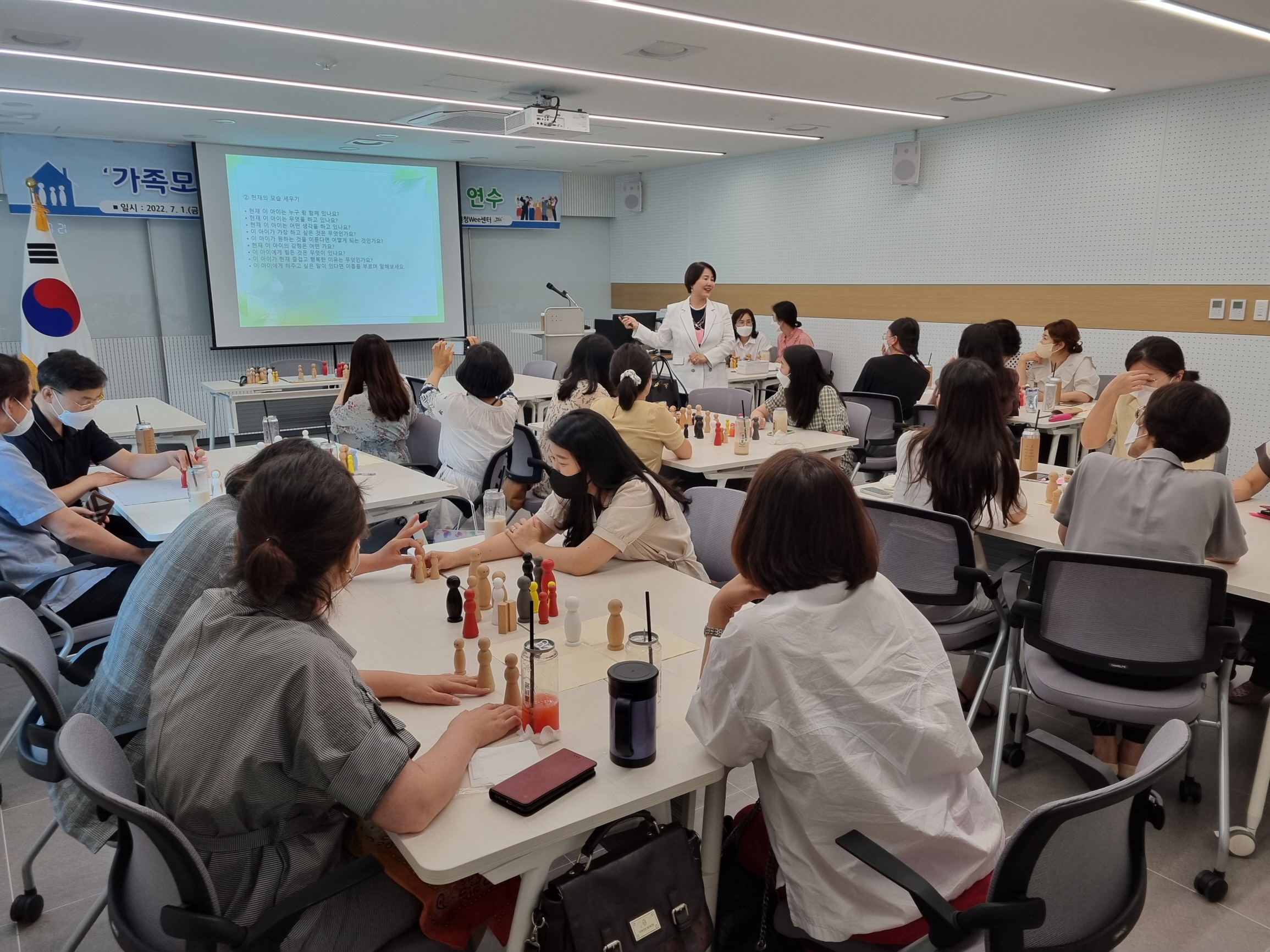 | 경상북도김천교육지원청(교육장 박삼봉)Wee센터는 7월 1일(금) 에 초, 중, 고등학교 Wee클래스 상담업무담당자 및 전문상담(교)사 32명, Wee센터 직원 9명, 총 41명을 대상으로 학생상담에 사용할 수 있는 가족모형세우기 도구를 활용하는 연수를 실시했다.