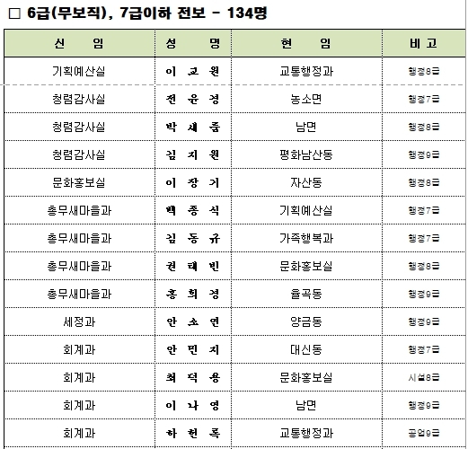 2022 인사이동 조서(2022.7.8字, 307명)