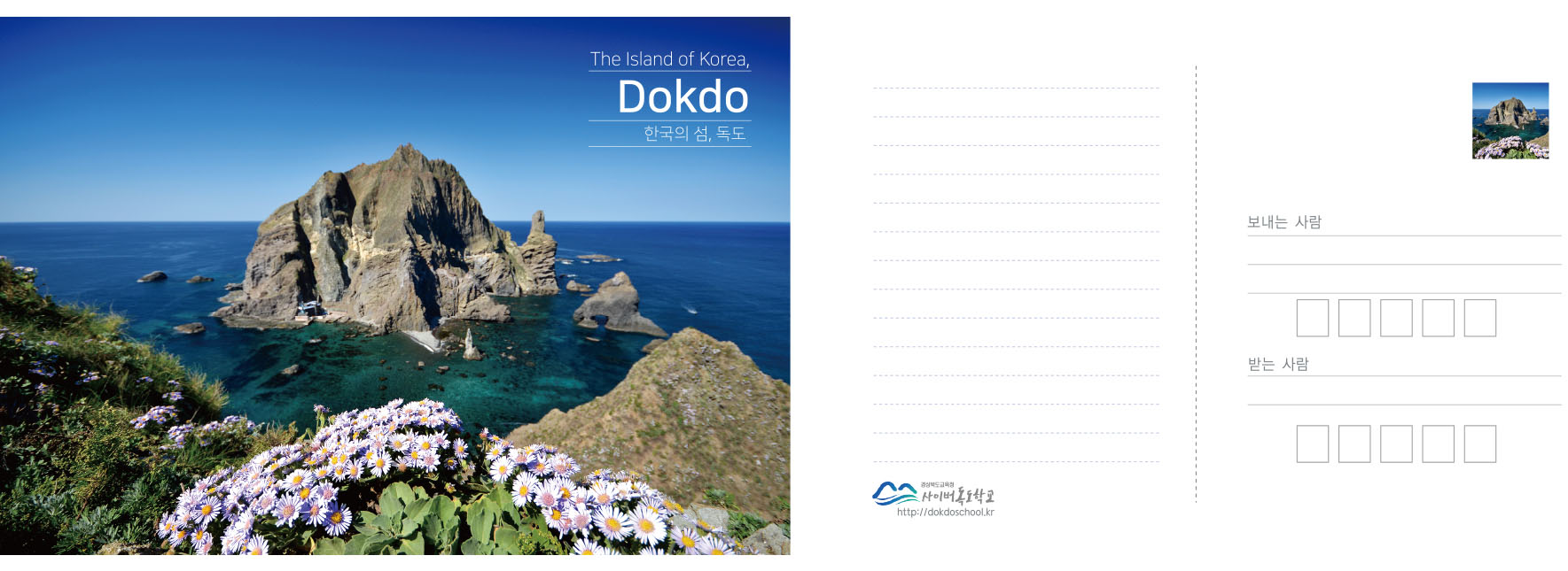 이번 독도엽서는 독도 사진 3종과 유화 2종 총 5종으로 제작되었으며, 엽서에 사용된 사진은 경북교육청 소속 교사들이 직접 찍은 것이며, 그림은 퇴직 교원이 교육용으로 제공한 것을 사용했다. 엽서 앞면에는‘경북교육청 사이버독도학교’영문 주소를 함께 기재해 사이버독도학교가 세계 독도교육의 플랫폼이 될 수 있도록 널리 홍보하고, 또한 독도엽서는 경북 독도교육의 전국화 프로젝트 과정에서 독도 굿즈로도 사용될 예정이다.