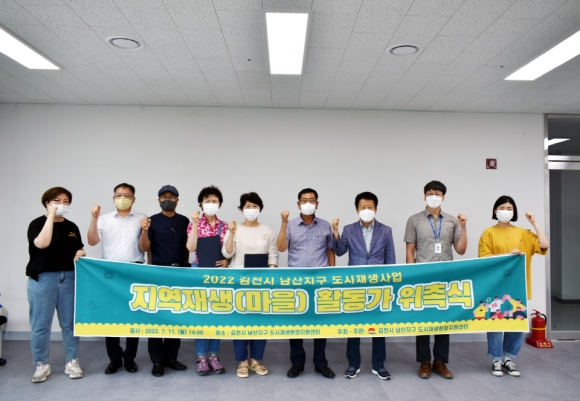 | 김천시는 7월 11일 남산지구 도시재생사업 추진에 따른 마을 공동체 활성화를 위해 김천시 남산지구에서 활동할 지역재생(마을) 활동가 3명을 위촉했다.