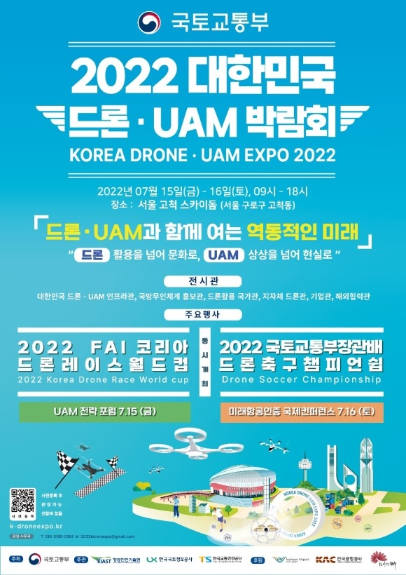 | 국토교통부와 항공안전기술원이 주관하는 ‘2022년 드론실증도시 지원사업’에 선정된 경상북도 김천시(시장 김충섭)가 오는 7월 15일과 16일 양일간, 서울 고척 스카이돔에서 개최되는 ‘2022 대한민국 드론·UAM 박람회(KOREA DRONE·UAM EXPO 2022 주최: 국토교통부/주관: 항공안전기술원, 한국국토정보공사, 한국교통안전공단)’에 참가한다.