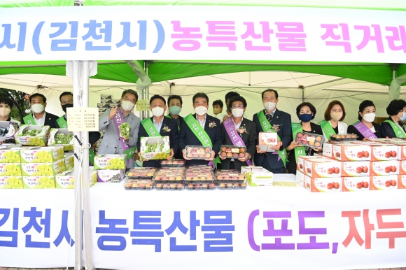 김천시와 군산시는 1998년 자매 결연을 맺은 후 2009년부터 해마다 두 도시를 오가며 농수특산물 교류행사를 추진해 남다른 우정과 협력관계를 이어가고 있다. 지난 2년 동안 코로나19로 인해 사전주문 판매만 드라이브 스루 방식으로 개최되었으나, 올해는 코로나19 일상회복 방침에 따라 예전과 같이 사전주문과 현장판매로 진행되었다.
