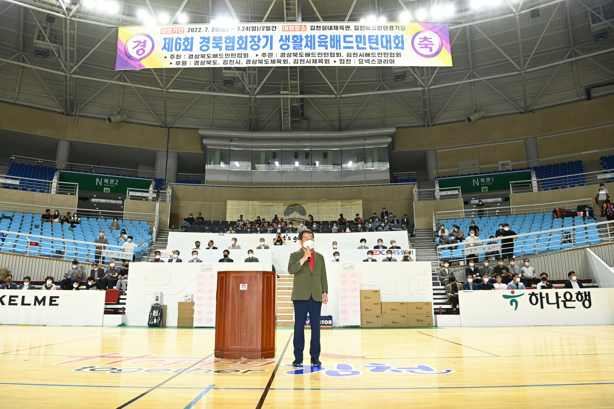 이번 대회는 경상북도배드민턴협회 주최, 경북배드민턴협회·김천시배드민턴협회 주관, 경상북도·김천시·경상북도체육회·김천시체육회 후원으로 진행됐으며, 경상북도 각지에서 436개팀 722여 명의 동호인들이 참가해 열띤 경쟁을 펼쳤다. 20대부터 70대까지 각 연령별 및 급수별로 나누어 남자복식, 여자복식, 혼합복식으로 23일부터 24일까지 이틀 간 경기가 치러졌다. 개회식에는 김천시립국악단의 식전행사를 시작으로 김충섭 김천시장, 이명기 김천시의장, 김택규 대한배드민턴협회장, 김하영 경상북도체육회장,서정희 김천시체육회장 등 주요 내빈들이 참석하여 자리를 빛내 주었다.