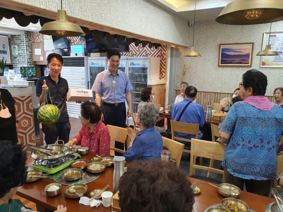 율곡동, 중복 맞이 경로당 위문