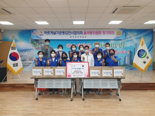 |  | | | ⓒ 김천내일신문 | | 김천시 율곡동 바르게살기위원회(위원장 박세희)는 7월 28일 동 행정복지센터 2층에서 2022년도 하반기 정기총회를 개최하며, 도움이 필요한 저소득층 가구를 지원하기 위한 위로 물품 전달식을 가졌다.