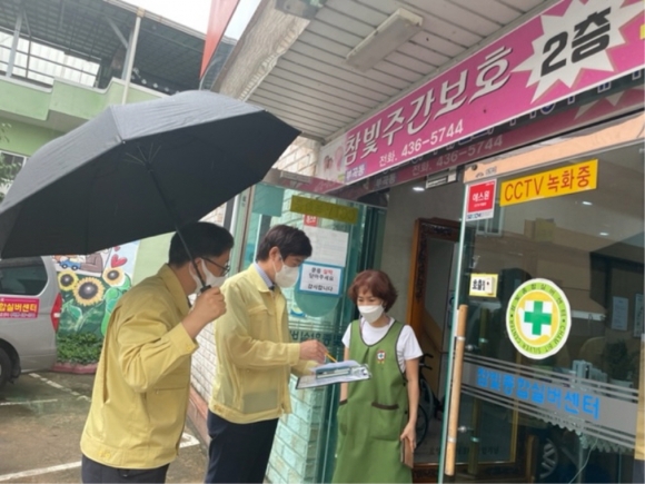 김천시청 사회복지과는 지난 7월 31일 주말임에도 불구하고 임재춘 사회복지과장을 비롯한 점검반 3명이 참빛종합실버센터, 김천실버케어노인요양원, 행복한동행노인요양원 등을 방문하여 시설 내 코로나 19 확산방지를 위해 방역수칙을 철저히 준수할 것을 요청했으며 종사자 RAT 검사 실시 및 코로나 4차 접종을 적극 권고했다.