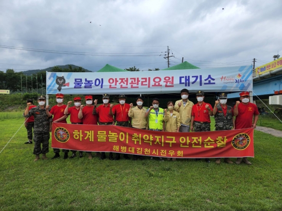 | 김천시는 여름철 물놀이 안전관리 특별대책기간(7.15~8.31)을 맞아 물놀이 관리지역을 대상으로 7월 30일 주말 간 해병대 김천시 전우회와 여름철 물놀이 안전사고 예방을 위해 합동점검을 실시했다. 김천시에서는 사회적 거리두기 해제로 인해 실외 물놀이 활동이 늘어날 것으로 예상되어 수도 계곡을 비롯해 사고위험이 많은 관리지역 7개소의 안전관리요원에 대한 교육을 강화하고 지도점검을 통한 안전사고 예방에 노력을 다하고 있다.