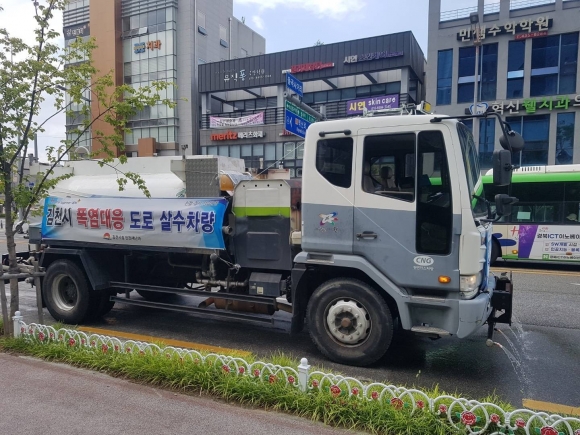 | 김천시(시장 김충섭)는 최근 폭염특보 발효에 따라 시민의 폭염피해 예방을 위해 관내 주요도로에 살수차를 운영한다고 밝혔다.