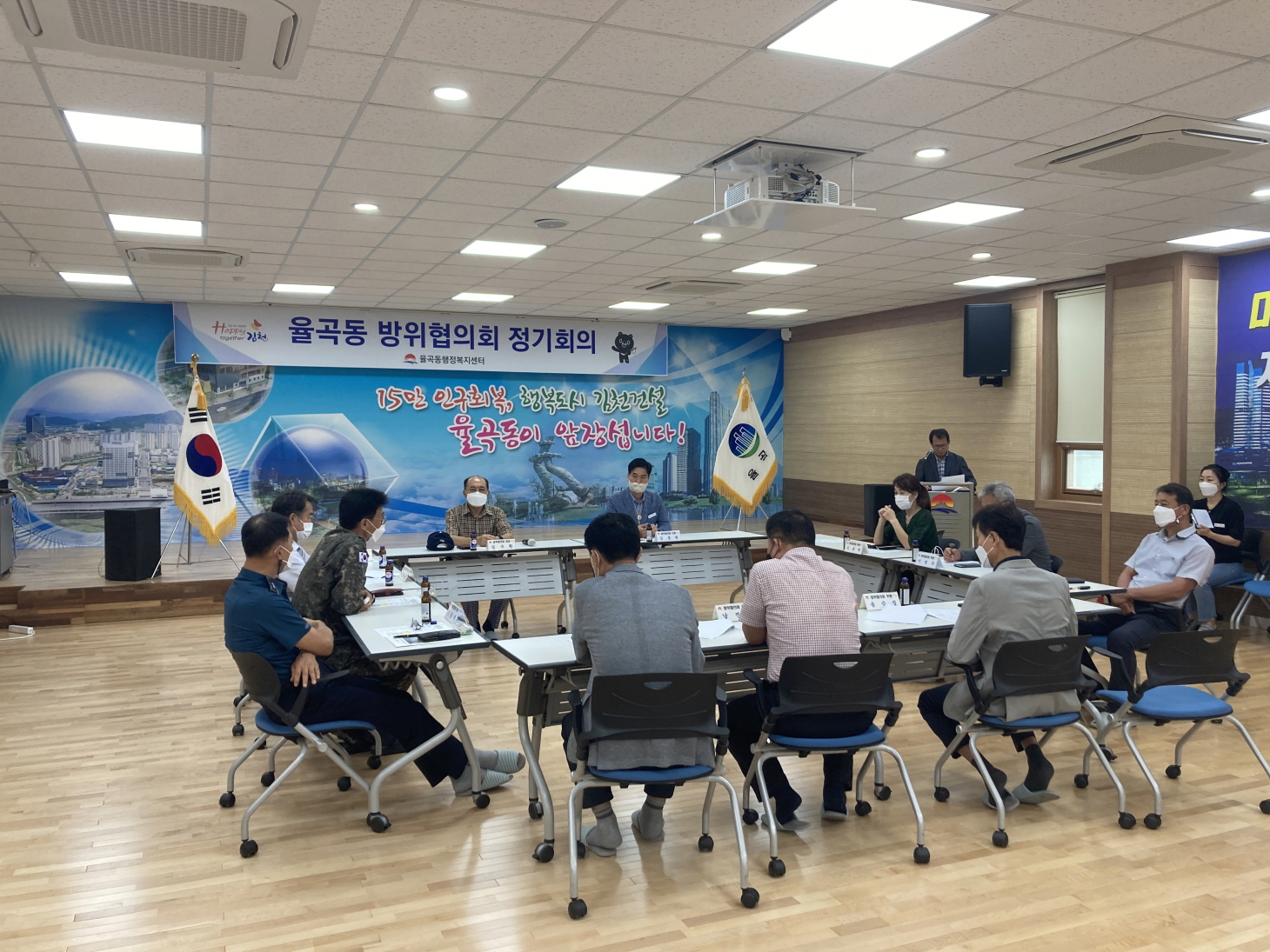 | 김천시 율곡동행정복지센터(동장 김종현)에서는 8월 3일 행정복지센터 2층 회의실에서 율곡동 방위협의회(회장 김수환) 8월 정례회의를 개최했다.