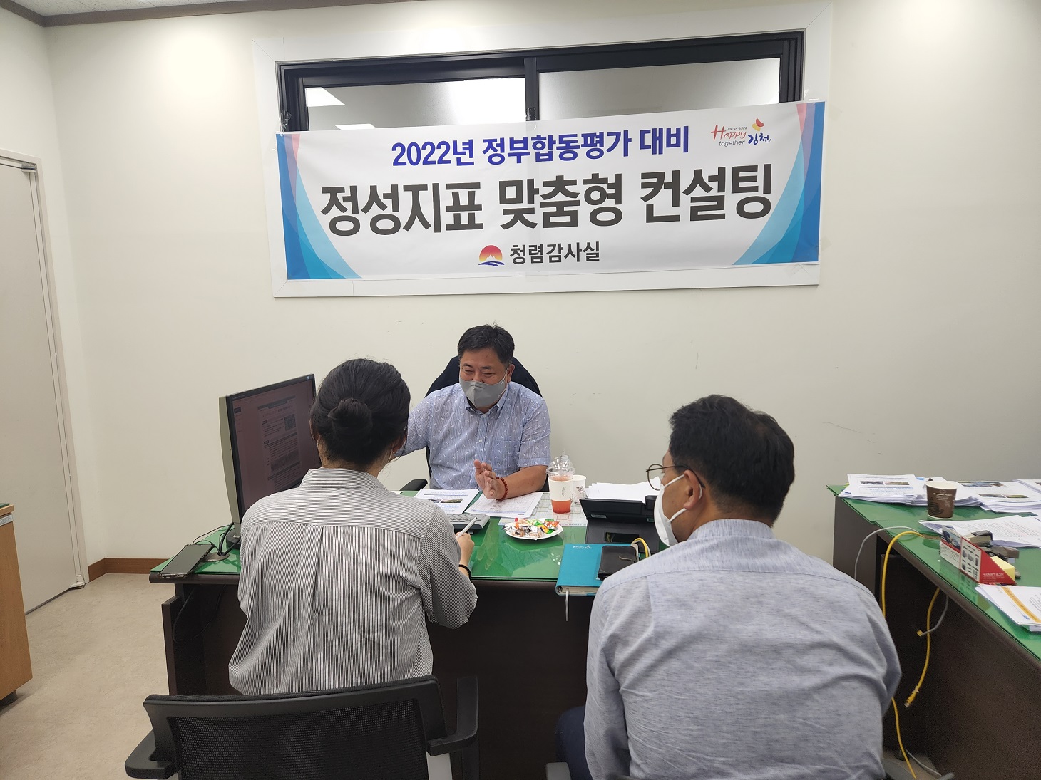 | 김천시(시장 김충섭)는 지난 8월 4일 2022년 실적 정부합동평가 대응 시․군 평가 실적향상을 위해, 정성지표 담당팀장 및 담당자를 대상으로 전문가 컨설팅을 실시했다.