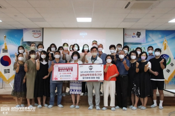 | 김천시 율곡동 통장협의회가 김천상무 후원회원에 가입하며 ‘율곡동 김천상무 릴레이후원 챌린지’에 동참했다.