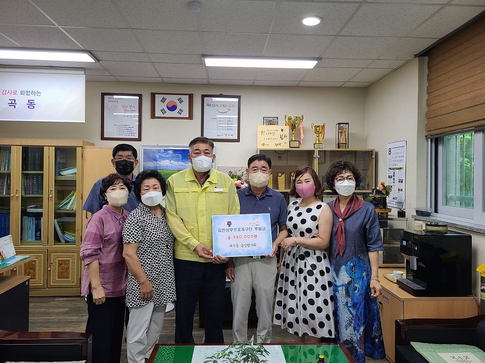 대곡동 통장협의회는 주민의 편익과 복지를 도모하고 지역발전을 위해 봉사하는 대곡동 내 59명의 통장들로 구성된 단체로 각 통장이 1만원씩 갹출하여 59만원을 김천상무프로축구단에 전달했다.