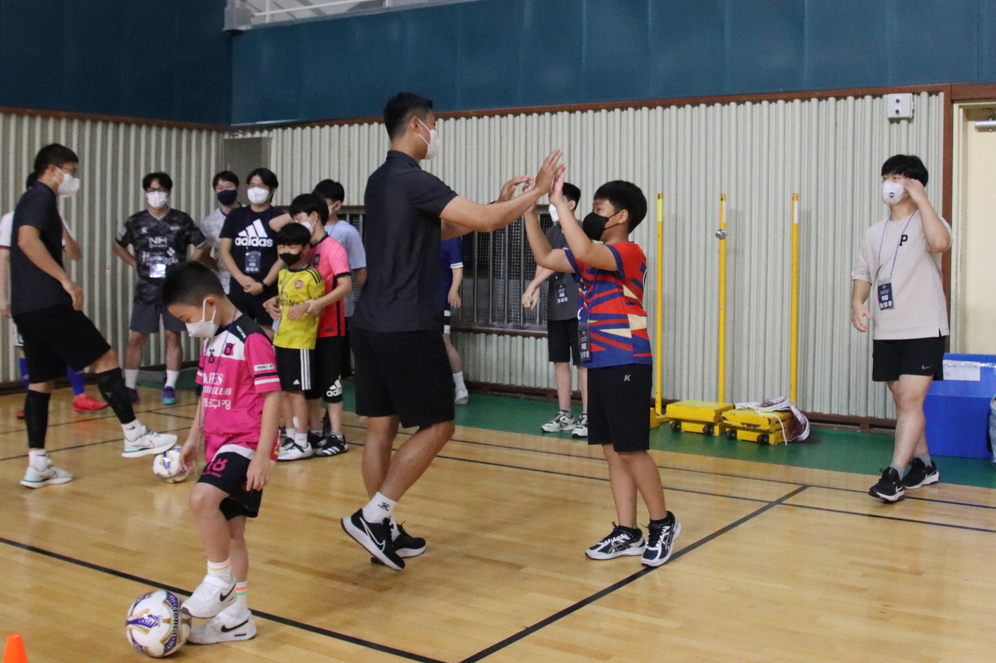 이날 축구클리닉은 스트레칭을 시작으로 콘 통과 후 패스, 순발력 게임, 미니게임, 팬 사인회 순서로 진행됐다. 미니게임에서는 권창훈 팀이 선제골로 앞섰지만 김지현 팀이 역전골을 터뜨리며 3대 2로 승리했다.
