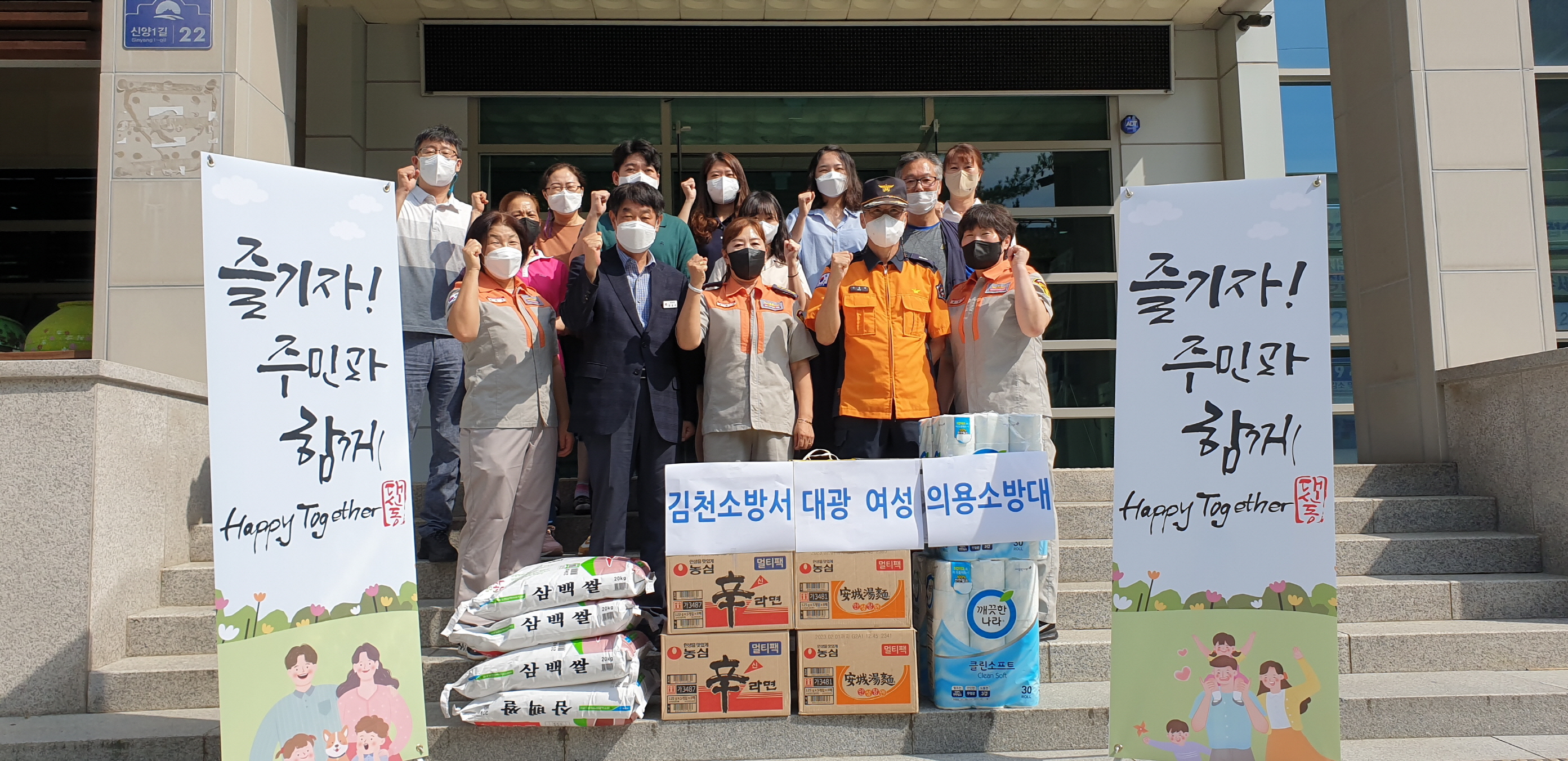 | 김천소방서 대광여성의용소방대(대장 정희남)는 지난 8월 19일 대신동행정복지센터를 방문하여 관내 저소득층을 위해 백미, 라면, 휴지 등 생필품(시가 50만원 상당)을 기탁하였고 당일 저소득 2가정에 물품을 직접 전달하였다.