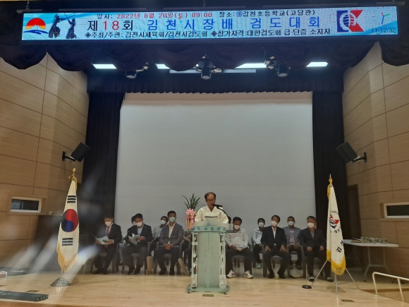 이원선 김천시검도회장은 “오늘 대회에 참가한 선수들 모두가 그동안 갈고 닦은 기량을 유감없이 발휘하여 자신의 명예는 물론 상생의 미덕을 살려 검도 정신의 참 의미를 높여 주실 것을 당부드린다”며“오늘 참가해주신 선수들과 자리를 빛내준 내빈분들게 감사드린다”고 전했다.