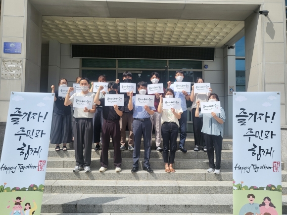 | 김천시 대신동 행정복지센터(동장 김윤수)는 ‘즐기자! 주민과 함께! Happy together!’을 새로운 슬로건으로 선정했다.