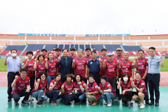 김천상무프로축구단(대표이사 배낙호)이 8월 23일 NH농협은행 김천시지부, 24일 김천시 서포터즈의 ‘2022 시즌 김천상무 정기 후원회원’ 가입 행사를 진행했다. 23일 행사에는 김진욱 NH농협은행 김천시지부장, 김준연 김천드림밸리지점장, 전상준 동김천지점장, 강동호 농정지원단장, 백창민 부지점장, 제갈영섭 총무팀장을 비롯해 배낙호 김천상무 대표이사, 최한동 후원회장이 참석했다. NH농협은행 김천시지부는 23명이 후원회원에 가입했고 9명이 골드 등급, 14명이 실버 등급으로 함께했다.
