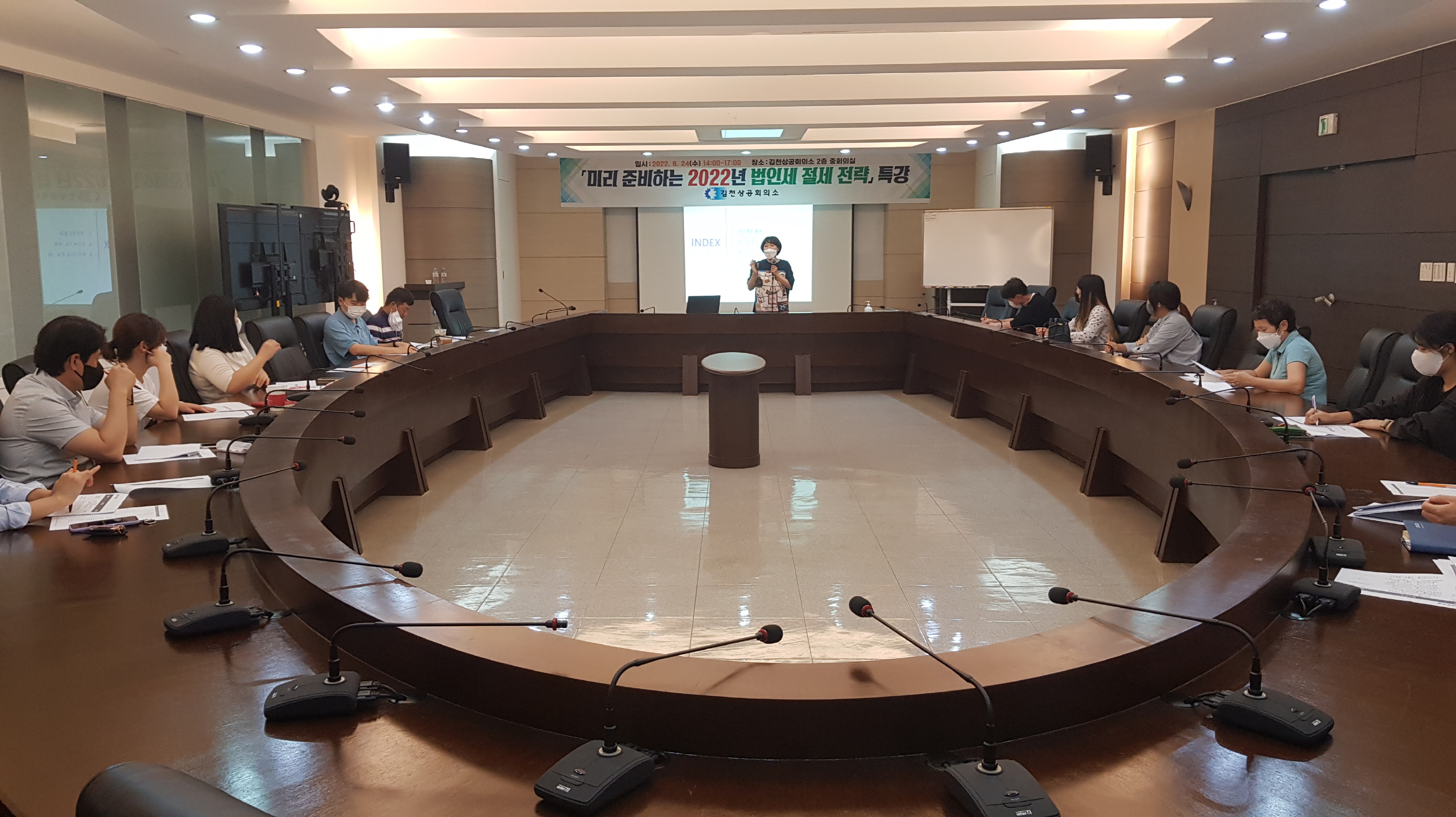 | 김천상공회의소(회장 안용우)는 지난 8월 24일(수) 오후 2시 본 회의소 2층 중회의실에서 「미리 준비하는 2022년 법인세 절세 전략」 특강을 개최했다.