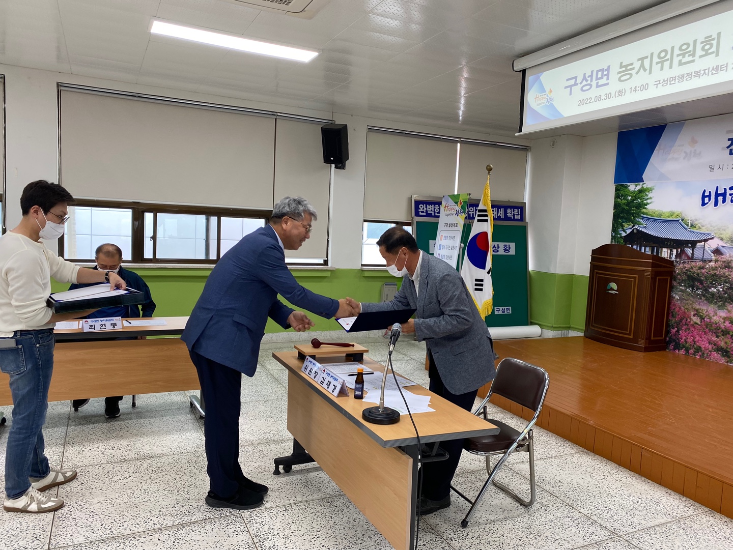이날 회의는 새로 위촉된 위원 10명에게 구성면장이 위촉장을 전수하고, 구성면에 신청 접수된 농지취득자격증명 신청건에 대해 심사하는 순으로 진행되었다.